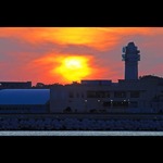 説明 | 東経135度の子午線の上に建つ、 明石市立天文科学館の時計塔と夕陽のコラボです。 |