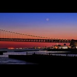 説明 | 新月から1日経った月齢1.3の月と、 明石海峡大橋の夕景です。 |