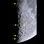 説明 | 月齢7.6の月の欠け際に見られた、 XやLOVEと読める地形です。 |