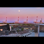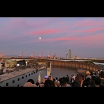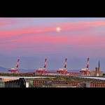 説明 | 大阪・関西万博の大屋根リングから写した中秋の名月です。 万博のパビリオンより会場の外にあるキリンのようなクレーンの方が目立っていました。 |