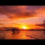 > 夕日に輝く水中木