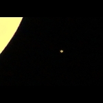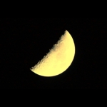 説明 23年ぶりの土星食です。次回は13年後だそうです。 月の上から入って、3枚目で右の上方から出たところです。 土星をズームアップにしたらこんな画像になりました。